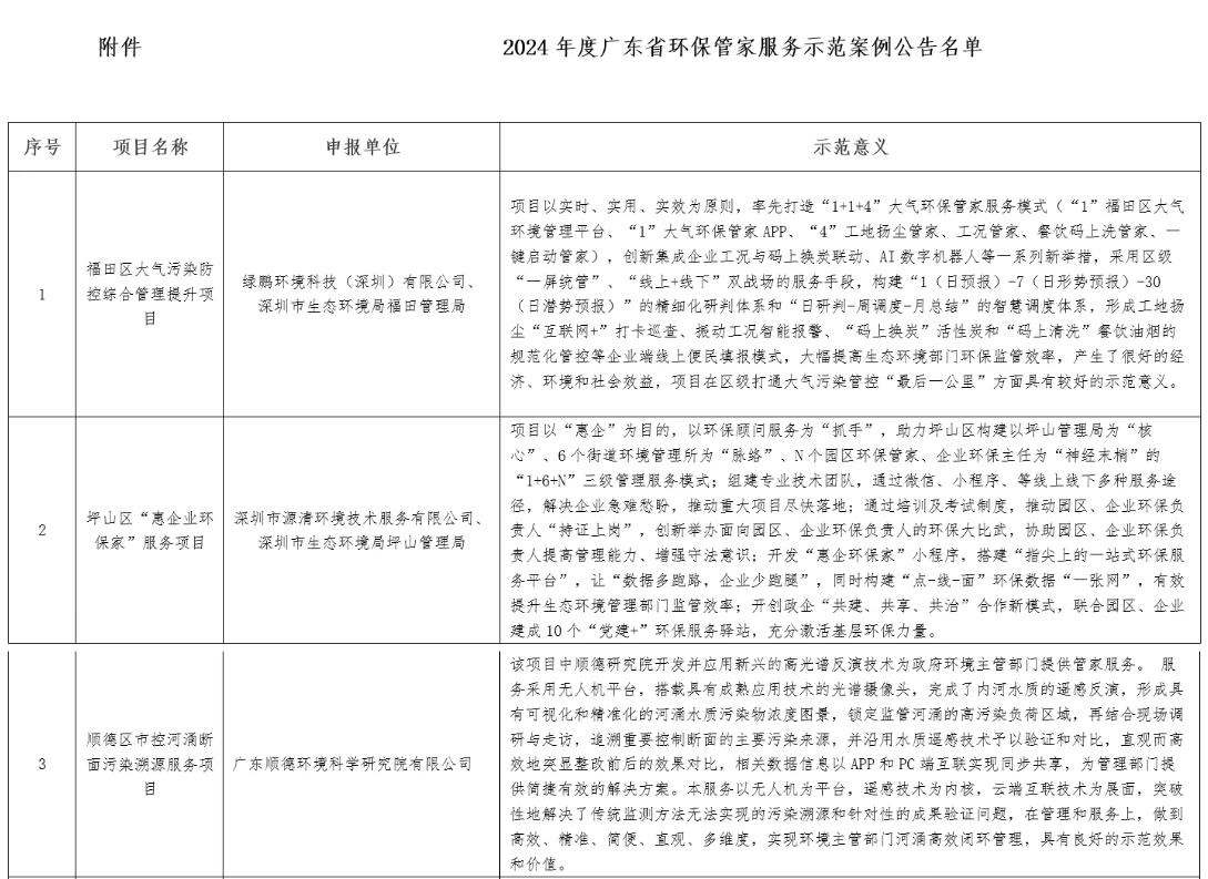 我司環保管家項目被評為“廣東省環保管家服務示范案例”